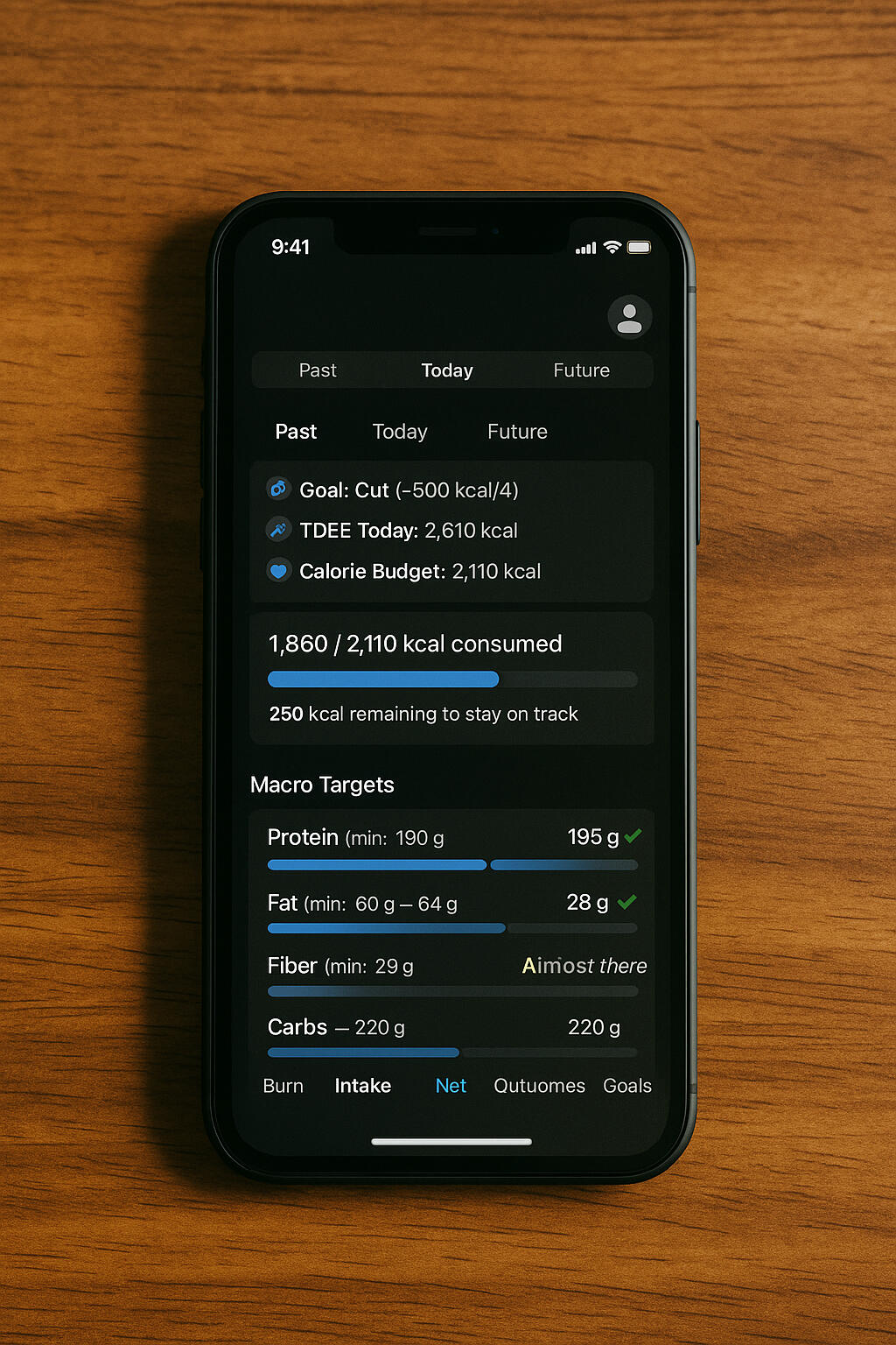 EnergyBalance connects to Apple Health to model your unique metabolism based on real-world weight, intake, and activity—then gives you clear, actionable guidance to help you reach your goals.